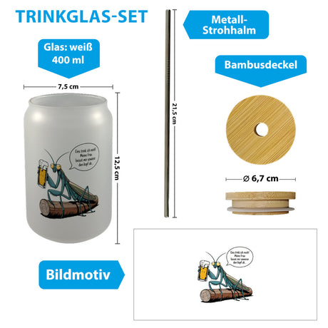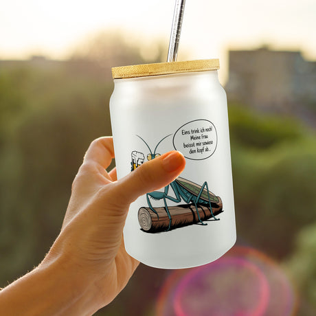 - Gottesanbeterin mit Bier - Eins trink ich noch Trinkglas mit Bambusdeckel Ab €12,95Grundpreis /Nicht verfügbarAuf Lager