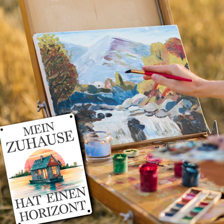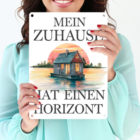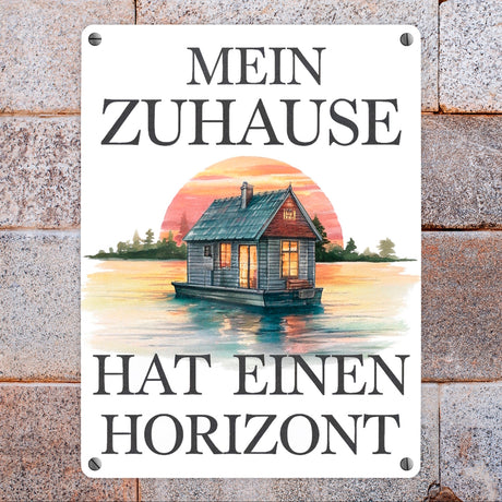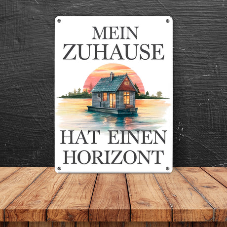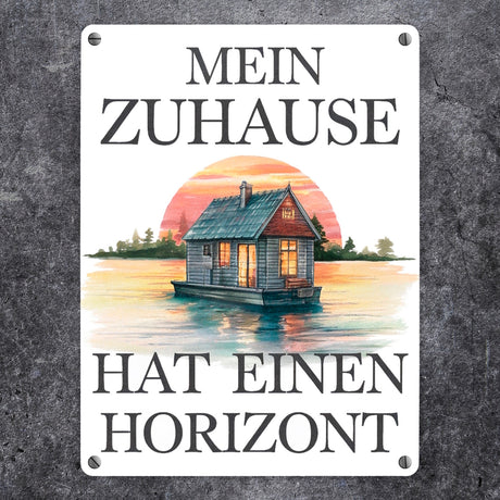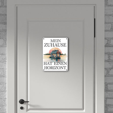 Ab €7,90Grundpreis /Nicht verfügbarAuf LagerHausboot auf Wasser Metallschild in 15x20 cm - Zuhause mit Horizont