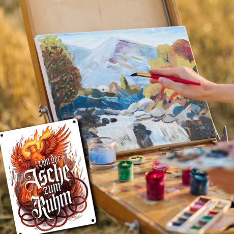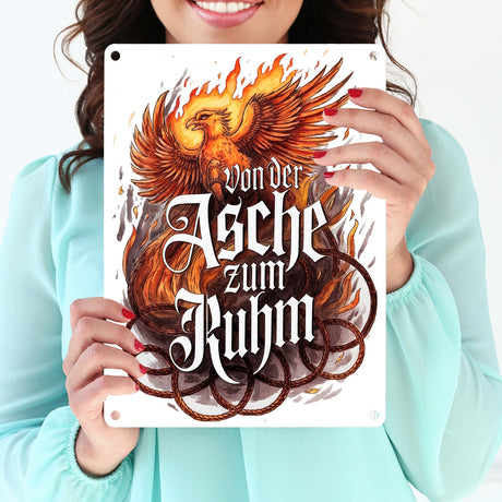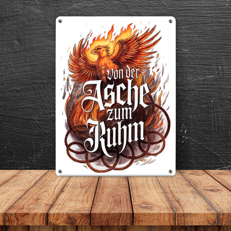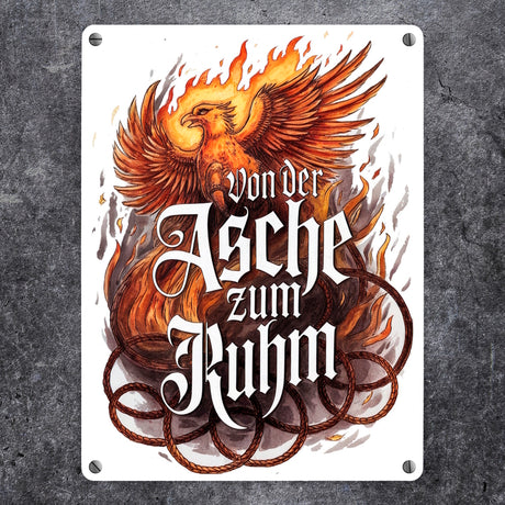 Ab €7,90Grundpreis /Nicht verfügbarAuf LagerPhönix mit Flammen - Von der Asche zum Ruhm Metallschild in 15x20 cm