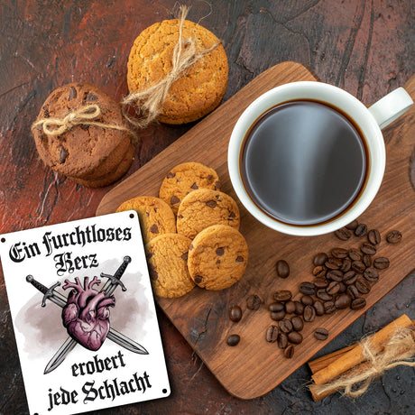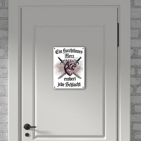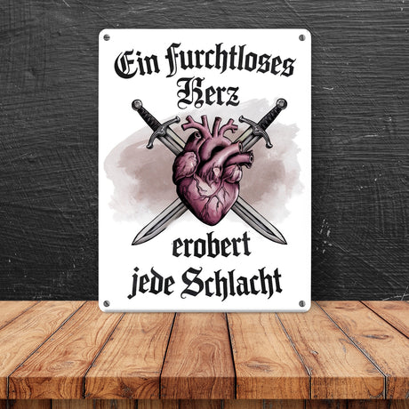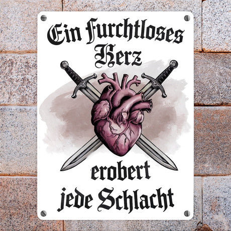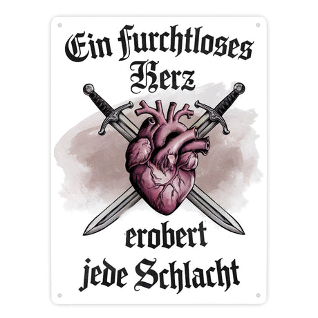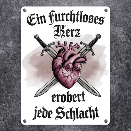 Ab €4,90Grundpreis /Nicht verfügbarAuf LagerFurchtloses Herz erobert Schlacht Metallschild in 15x20 cm - Herz und Schwerter Emblem