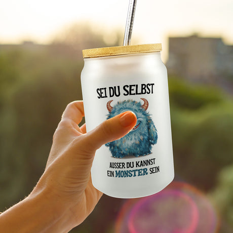 €12,95Grundpreis /Nicht verfügbar Sei du selbst außer du kannst ein Monster sein Trinkglas mit Bambusdeckel