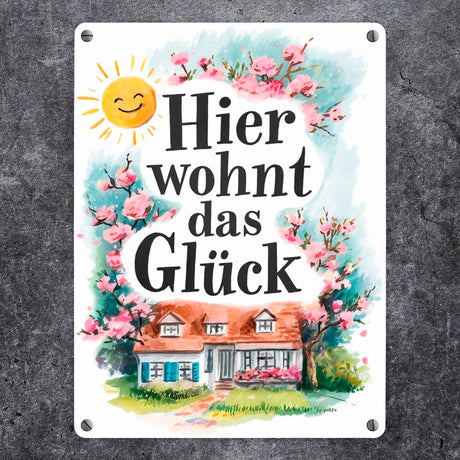 Ab €7,90Grundpreis /Nicht verfügbarAuf LagerHier wohnt Glück Metallschild in 15x20 cm Aquarell Dekoration