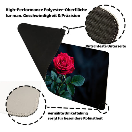 Ab €14,90Grundpreis /Nicht verfügbarAuf LagerLeuchtend rote Rose Schreibtischunterlage 69x31cm XXL Mauspad für Rosenfans