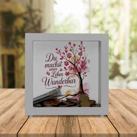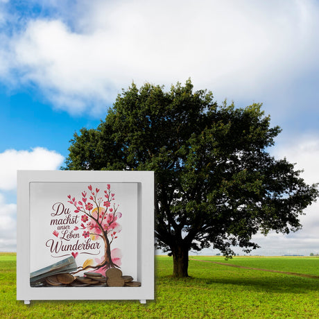 Ab €12,95Grundpreis /Nicht verfügbarAuf LagerDu machst unser Leben wunderbar Spardose Baum mit Blumen