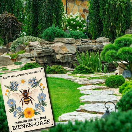 Ab €8,95Grundpreis /Nicht verfügbarAuf LagerBiene mit Blumen DAS IST KEIN UNORDENTLICHER GARTEN Metallschild in 15x20 cm