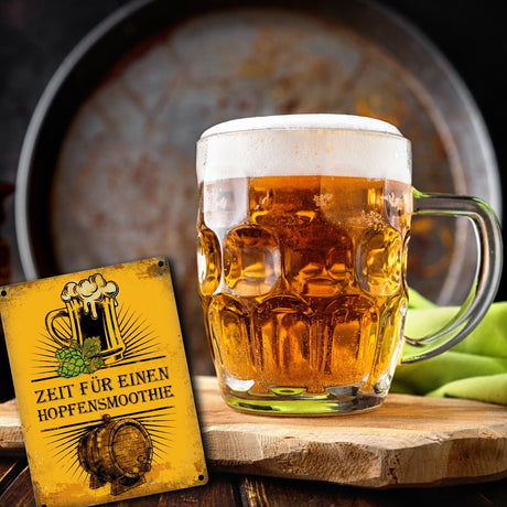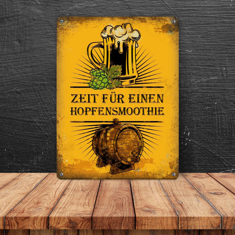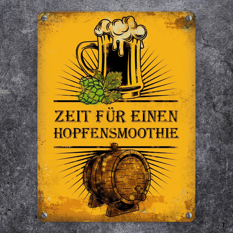 Ab €12,95Grundpreis /Nicht verfügbarAuf LagerMetallschild mit Bier Motiv und Spruch: Zeit für einen Hopfensmoothie