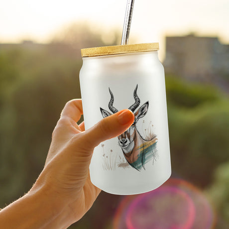 Ab €12,95Grundpreis /Nicht verfügbarAuf LagerAnmutige Antilope Trinkglas mit Bambusdeckel für Wildnis-Fans