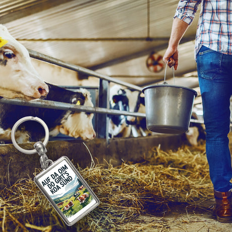 Ab €6,95Grundpreis /Nicht verfügbarAuf LagerAuf da Oim, do gibt's koa Sünd Schlüsselanhänger Berglandschaft mit Kühen