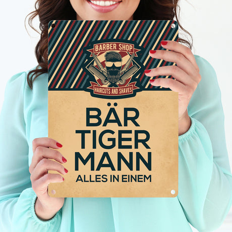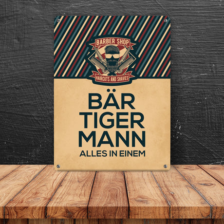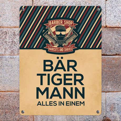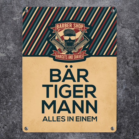 Ab €8,95Grundpreis /Nicht verfügbarAuf LagerBär-Tiger-Mann alles in einem Metallschild mit Barber-Shop Motiv
