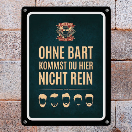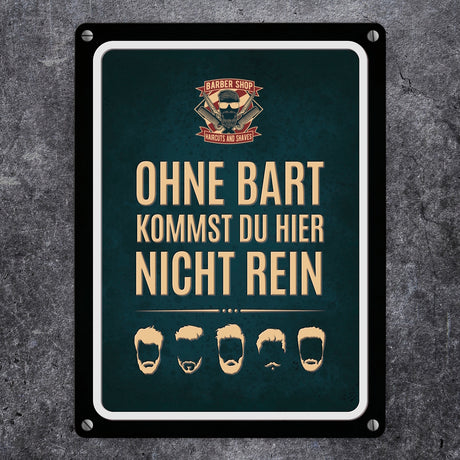 Ab €8,95Grundpreis /Nicht verfügbarAuf LagerOhne Bart kommst du hier nicht rein Metallschild mit Barber-Shop Motiv