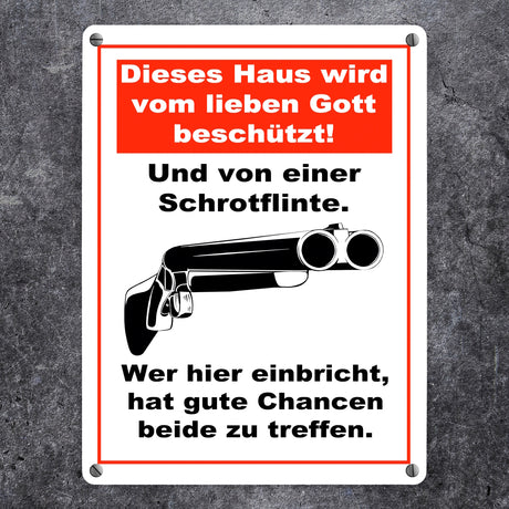 €22,95Grundpreis /Nicht verfügbarAuf LagerMetallschild Dieses Haus wird von Gott beschützt und einer Schrotflinte