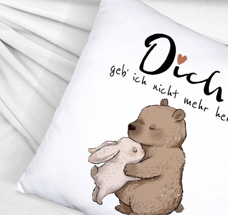 Ab €8,95Grundpreis /Nicht verfügbarAuf LagerHase und Bär Kissen mit Spruch Dich geb ich nicht mehr her