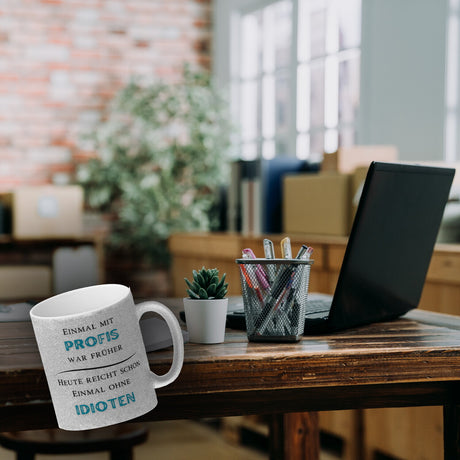 Ab €6,95Grundpreis /Nicht verfügbarAuf LagerEinmal mit Profis Kaffeebecher Heute reicht schon einmal ohne Idioten