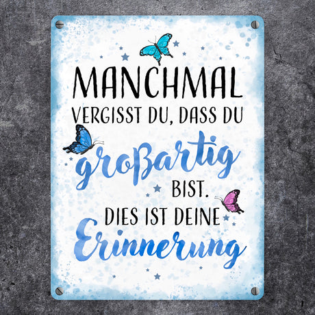 Ab €12,95Grundpreis /Nicht verfügbarAuf LagerSchmetterlinge Metallschild in 15x20 cm Manchmal vergisst du dass du großartig bist