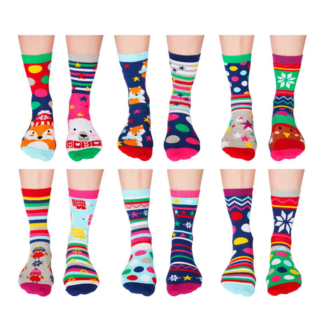 12 Weihnachtstage Oddsocks Socken Weihnachtskalender für Frauen in 37-42