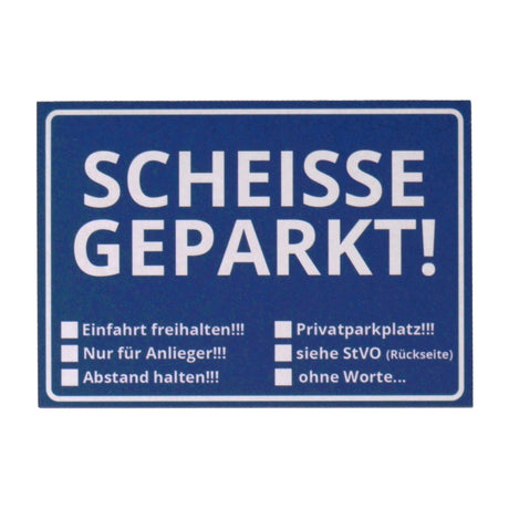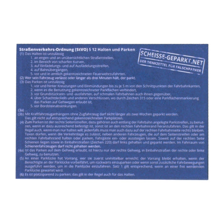 €19,95Grundpreis /Nicht verfügbarAuf LagerDie Scheisse Geparkt! Notizzettel mit StVO für die Windschutzscheibe im 50er Set