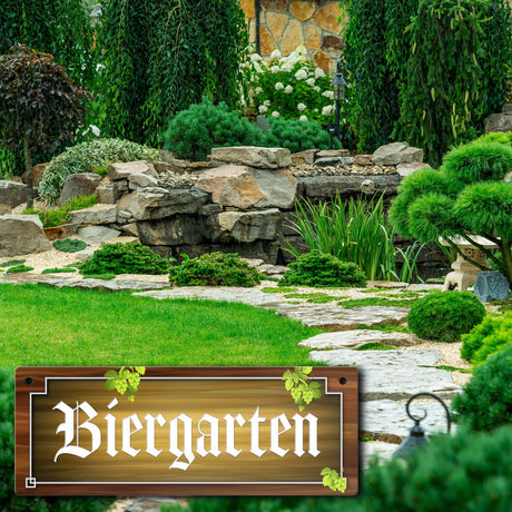 €22,95Grundpreis /Nicht verfügbarAuf LagerBiergarten Metallschild in Holz-Optik und Hopfen Motiv