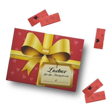 €15,95Grundpreis /Nicht verfügbar Losbox für die Hochzeit mit 50 Losen - das Hochzeitsspiel