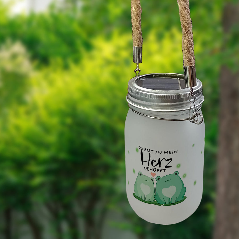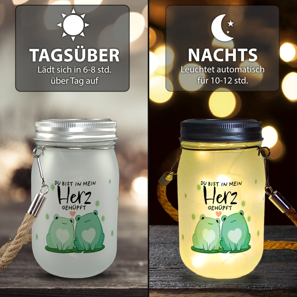 Frosch Solarlicht mit Spruch Du bist in mein Herz gehüpft
