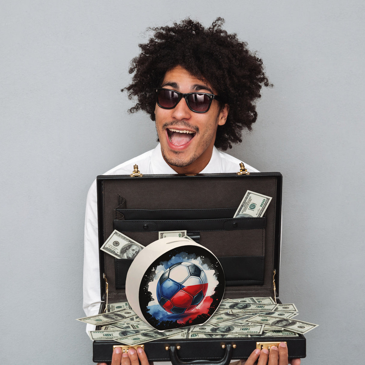 - Zeig deine Liebe zu Tschechien und Fußball mit dieser witzigen Spardose! Der Fußball ist mit der tschechischen Flagge in Rot, Weiß und Blau verziert und sieht einfach fabelhaft aus. Perfekt für die EM 2024 und echte Fans!