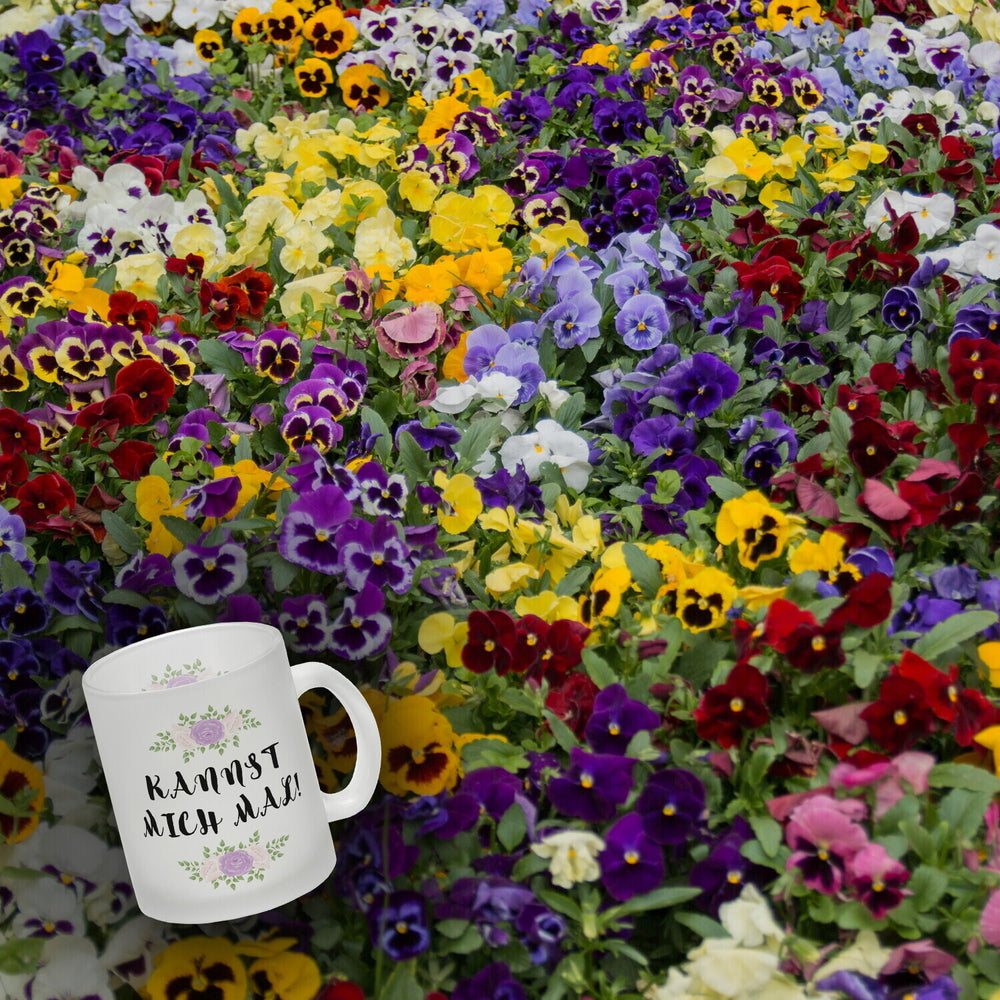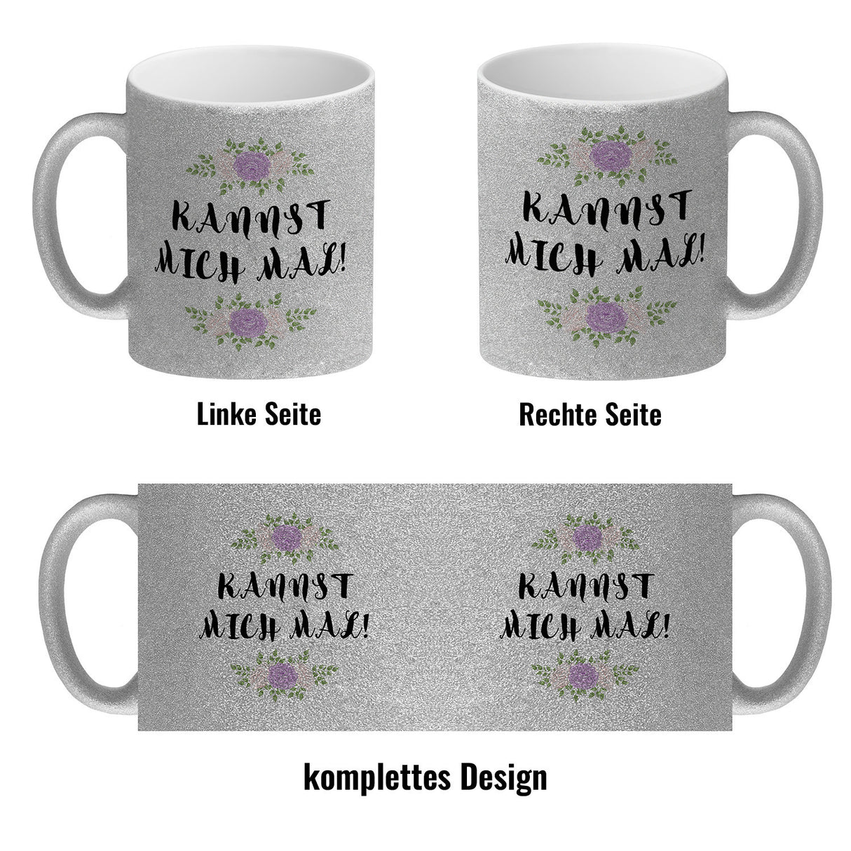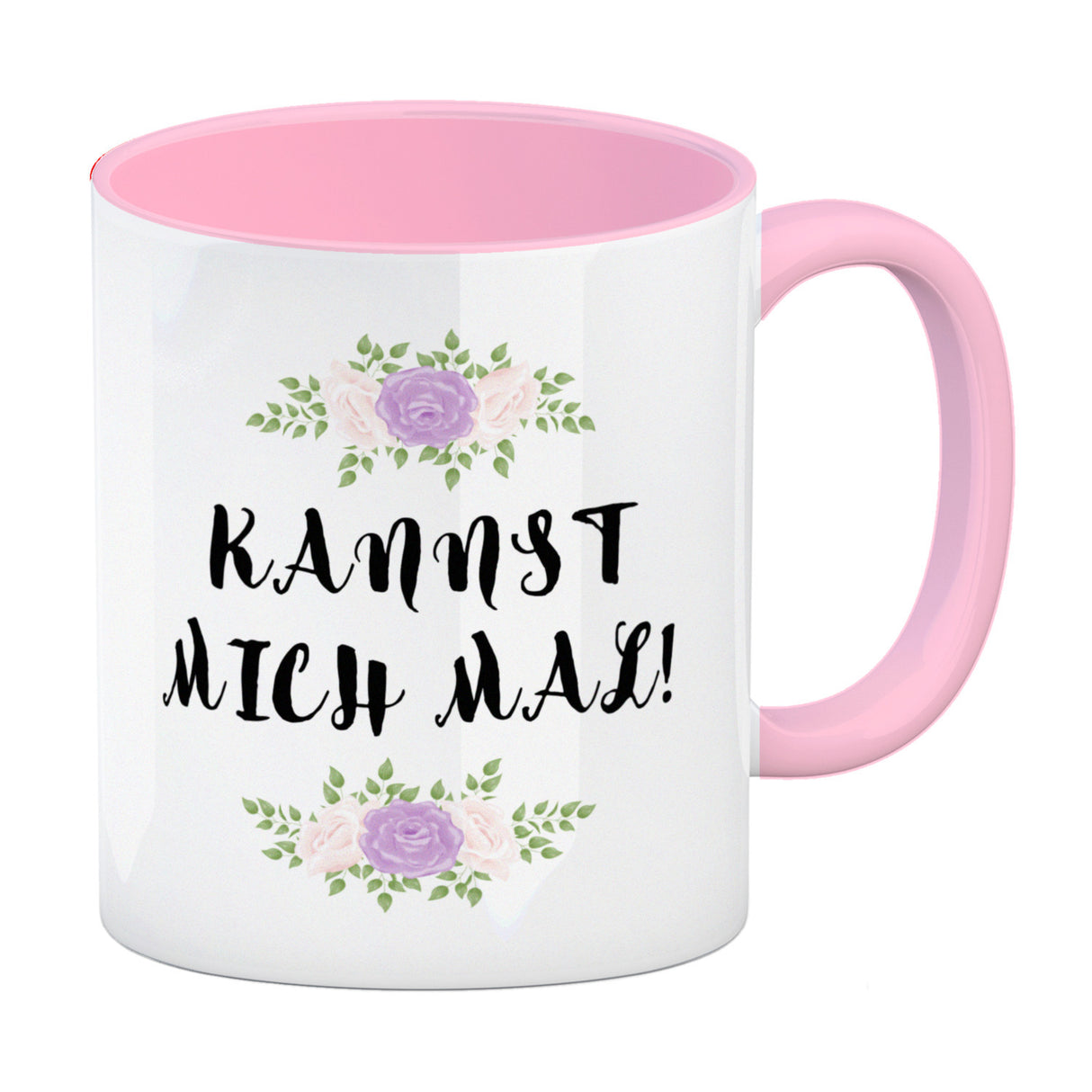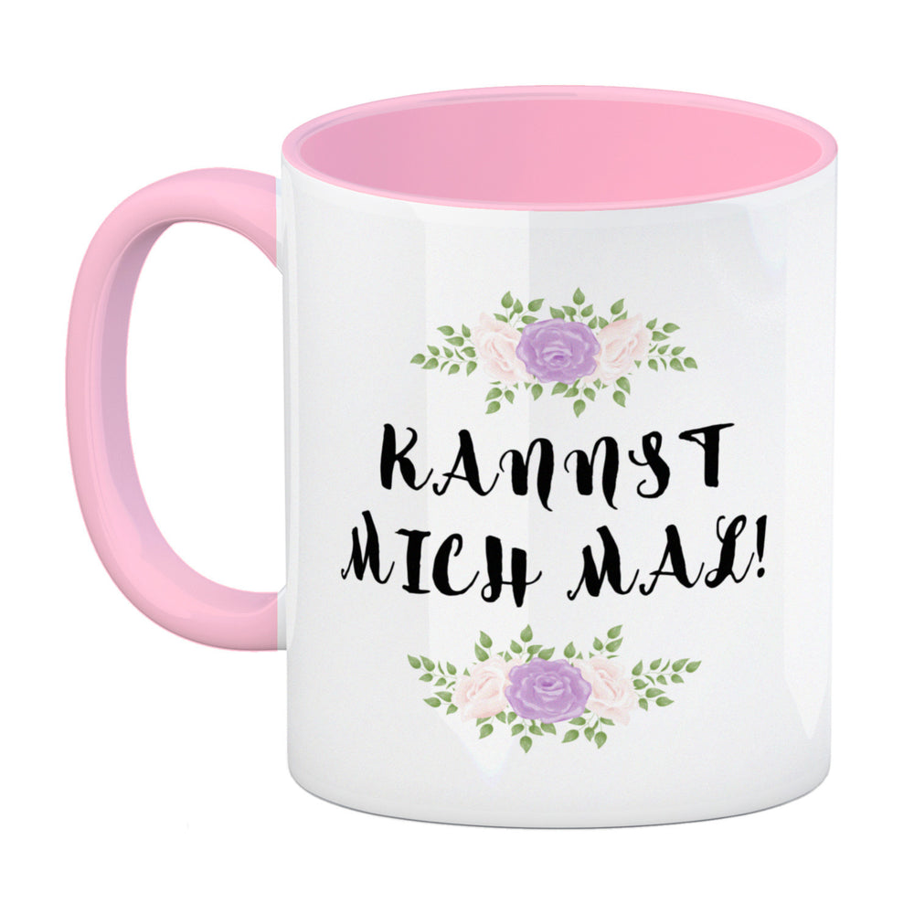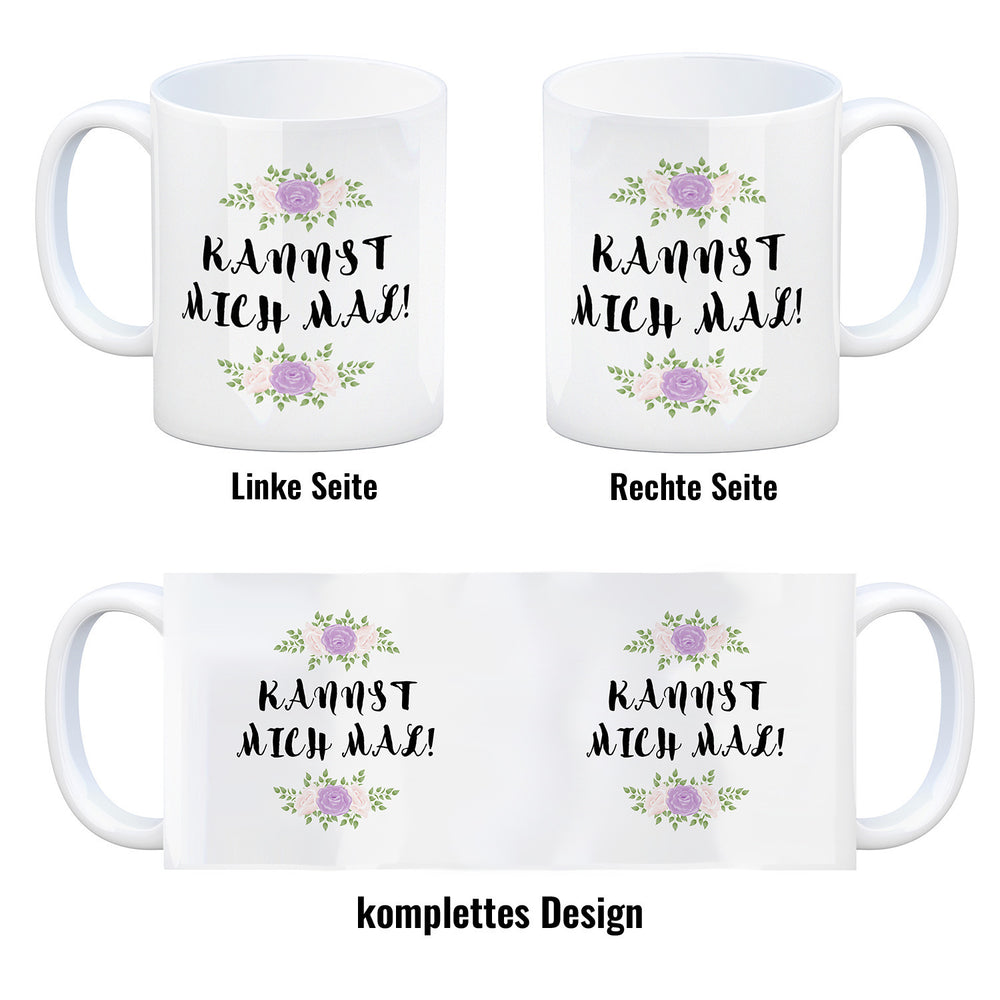 Kannst mich mal! Kaffeebecher mit Spruch und Blumen