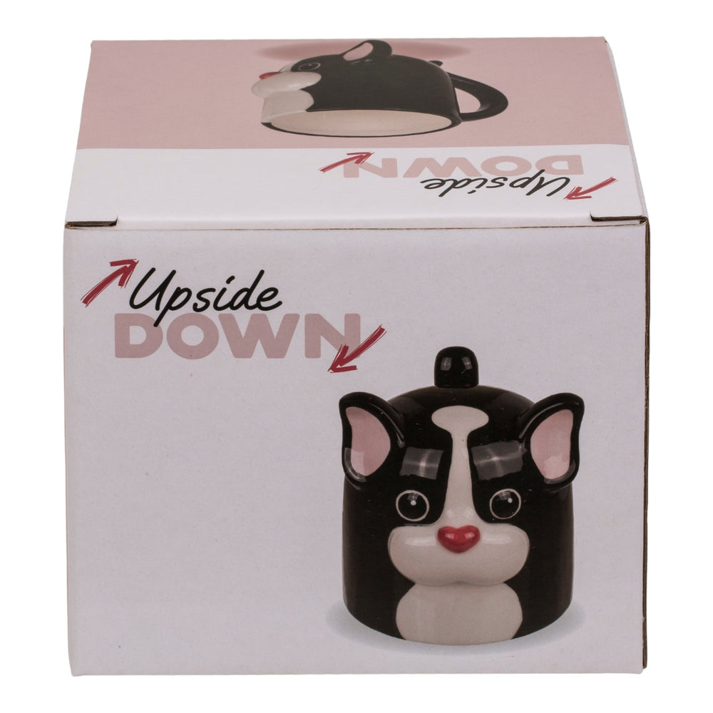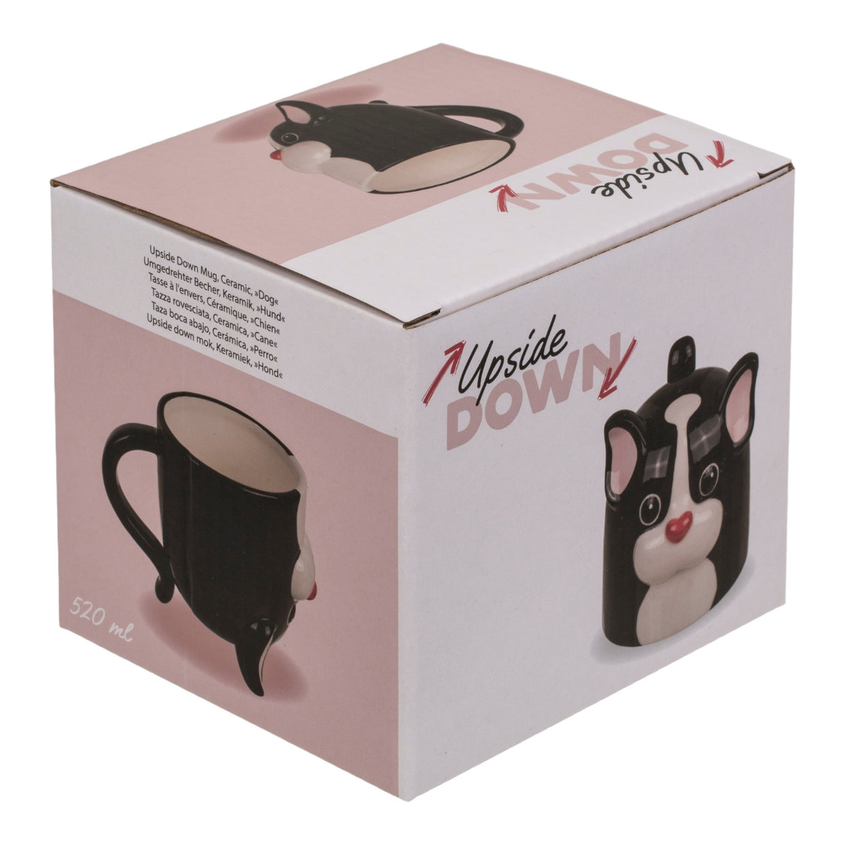 - 1x Schwarzer Hund Kopfüber Kaffeebecher aus Keramik.
