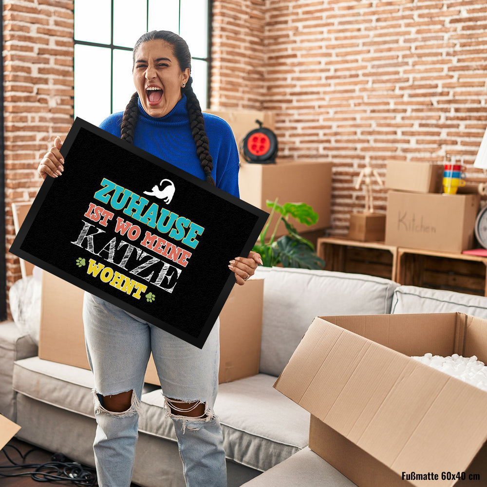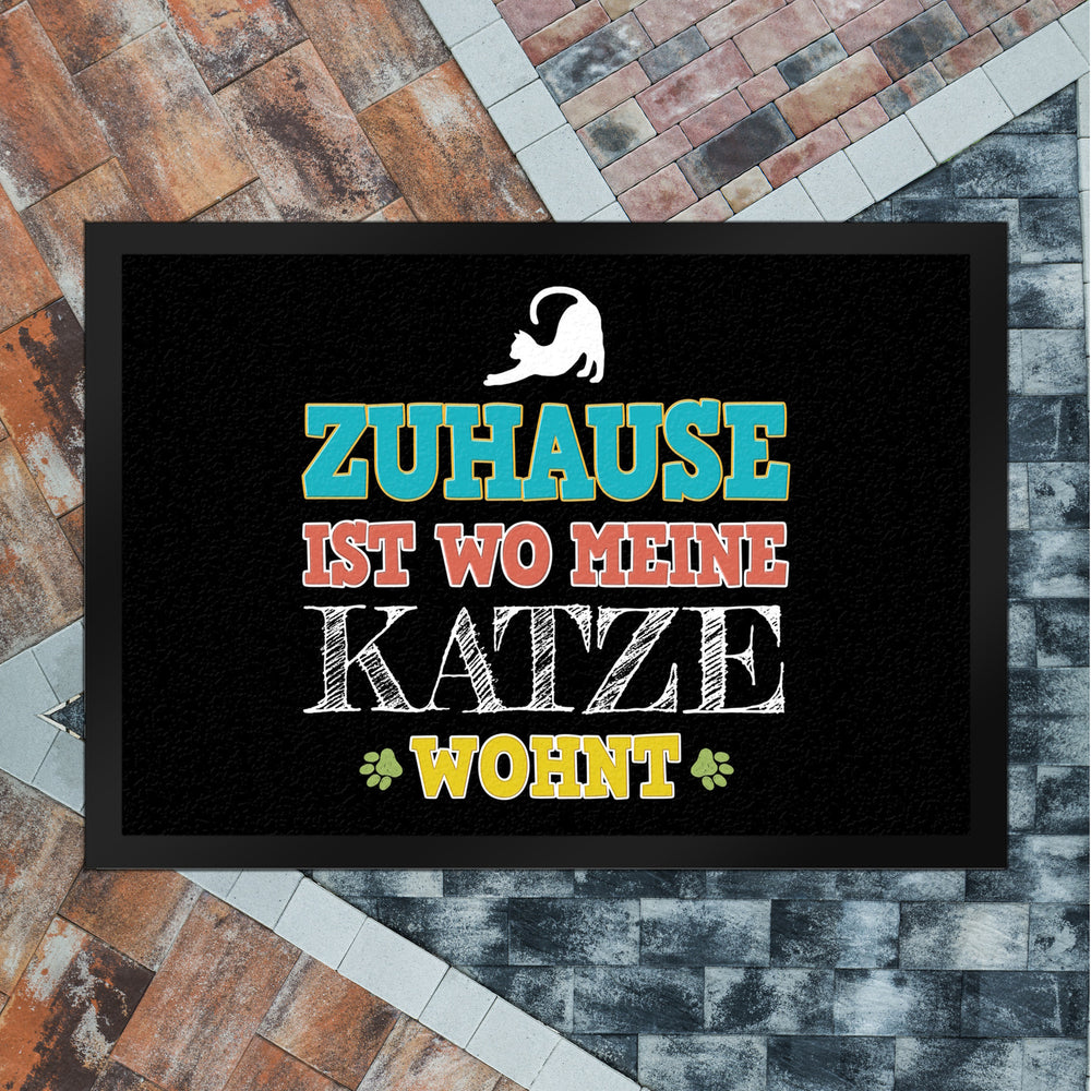 • 1x Zuhause ist wo meine Katze wohnt Fußmatte in der gewählten Größe
