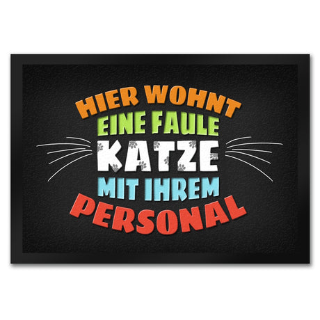 Hier wohnt eine faule Katze mit ihrem Personal Fußmatte