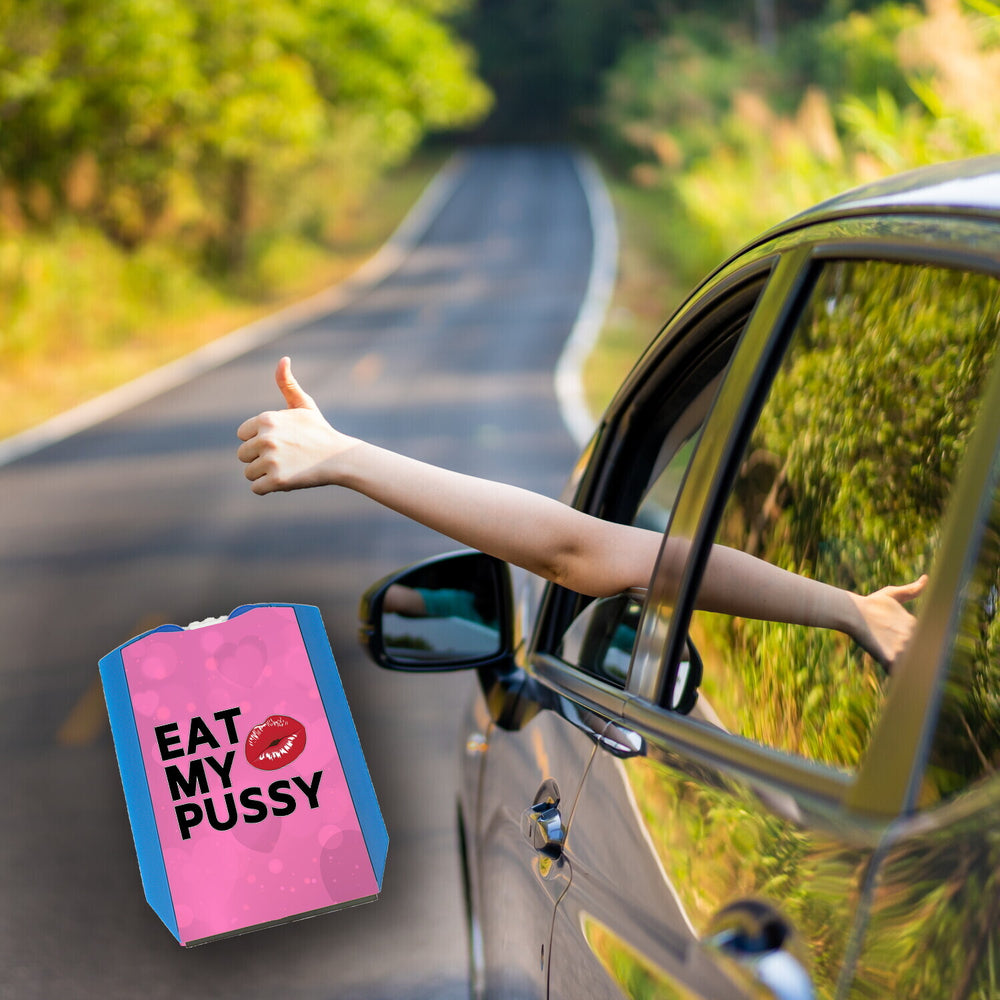 - Lieferumfang: 1x Eat My Pussy Parkscheibe mit 2 Einkaufswagenchips