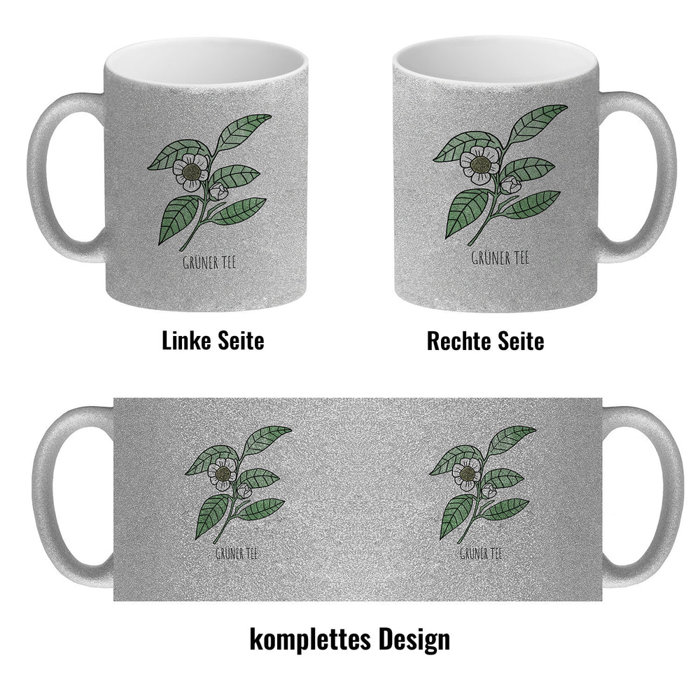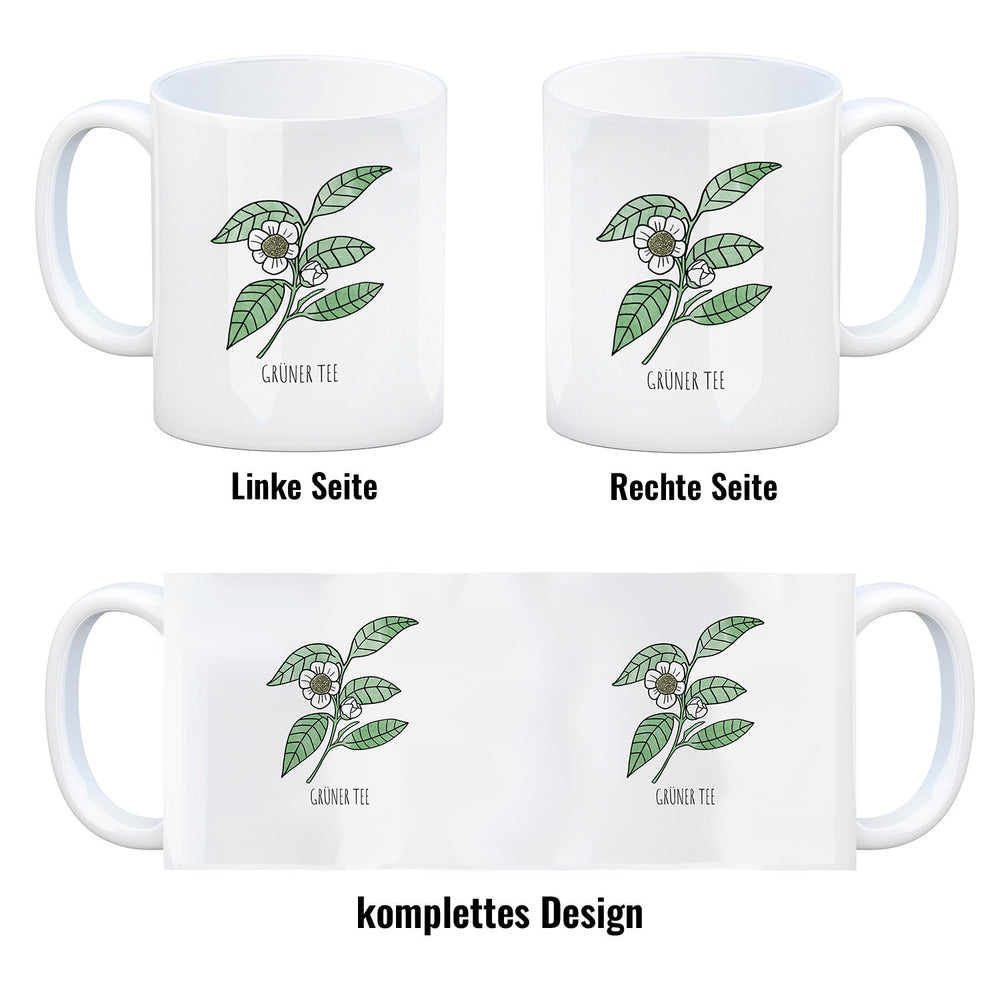 - 1x Grüner Tee Teetasse mit Teestrauch für Teetrinker in der gewählten Ausführung