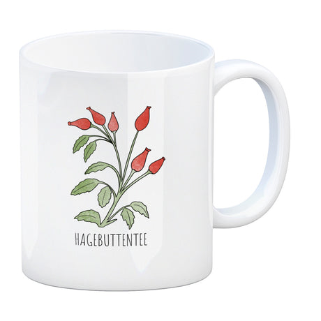 Hagebuttentee Teetasse mit Hagebuttenpflanze für Teetrinker