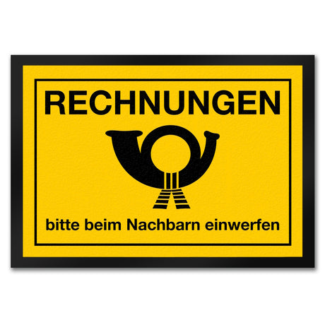 Fußmatte Rechnungen bitte beim Nachbarn einwerfen Post Briefträger mit Posthorn