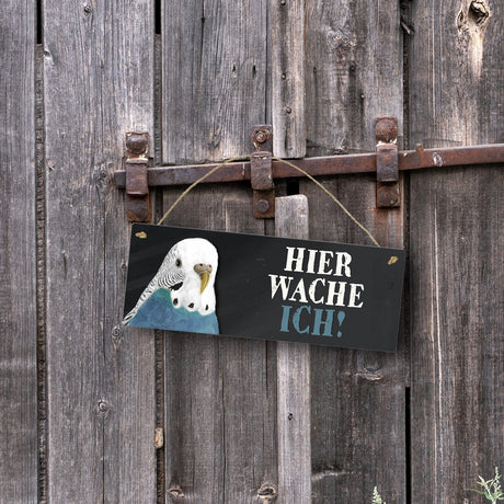 €11,95Grundpreis /Nicht verfügbarAuf LagerMetallschild mit Wellensittich blau Motiv und Spruch: Hier wache ich!