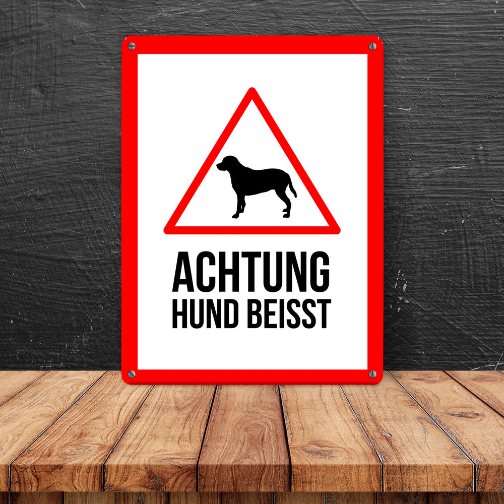 - 1x Achtung Hund beisst Metallschild mit Hunde Symbol in der gewählten Größe