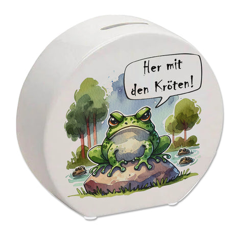 Griesgrämiger Frosch Spardose mit Spruch Her mit den Kröten!