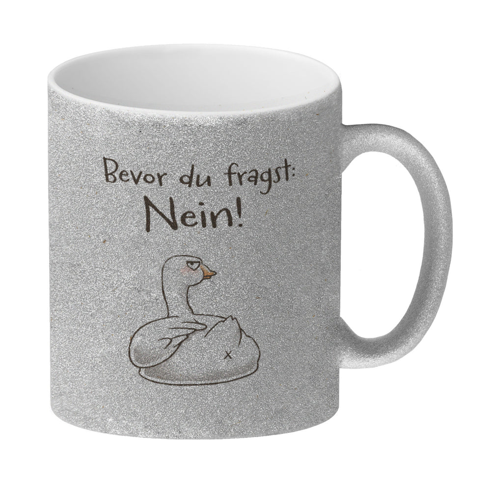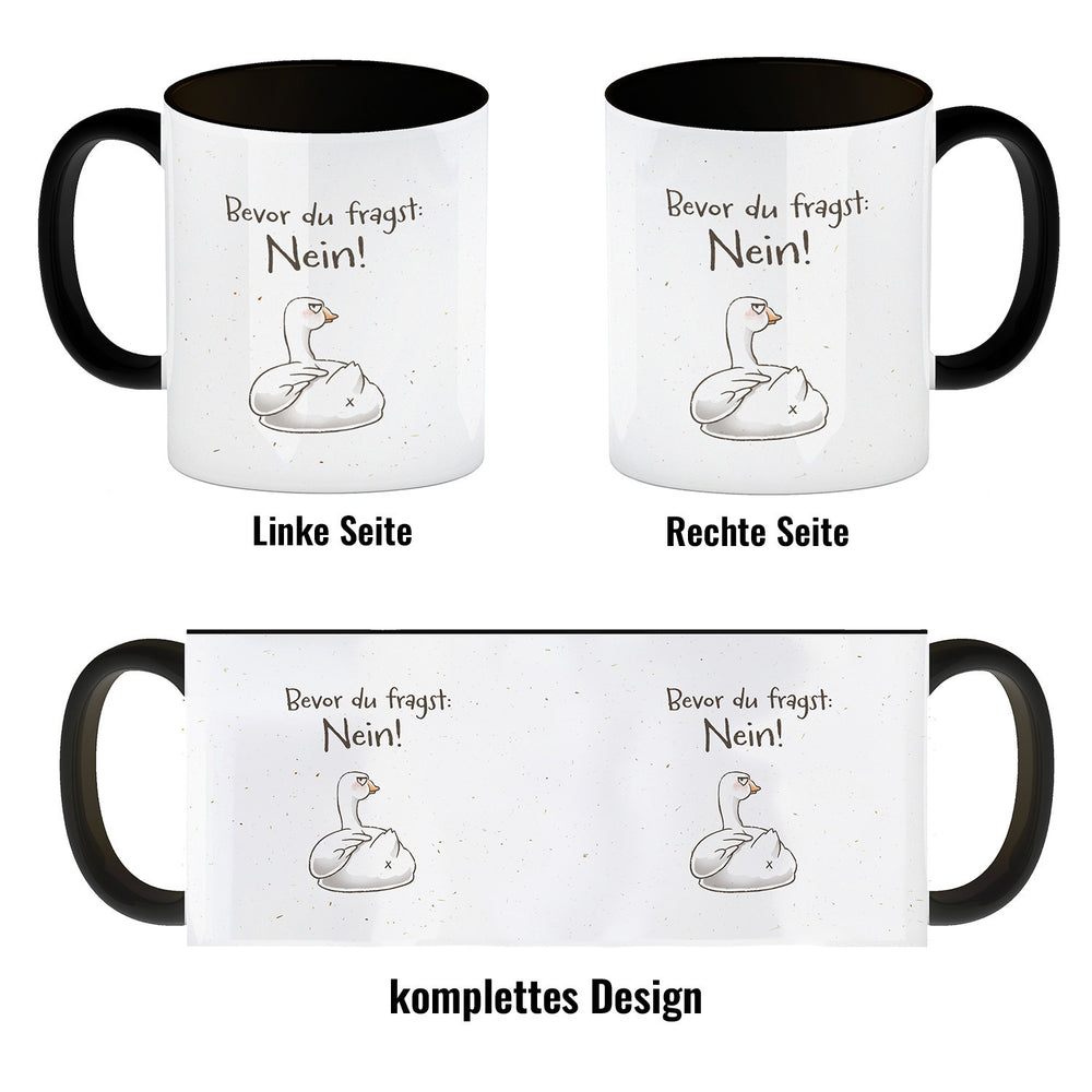 Gilbert die Gans Kaffeebecher mit Spruch Bevor du fragst Nein