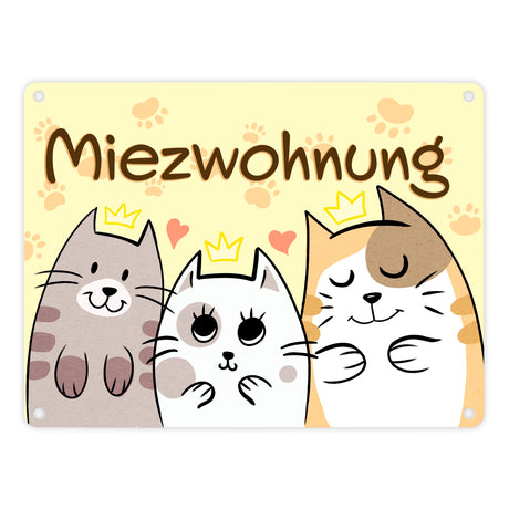 Miezwohnung Metallschild mit drei süßen Katzen für alle Katzenfreunde