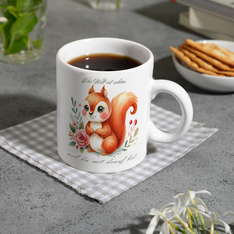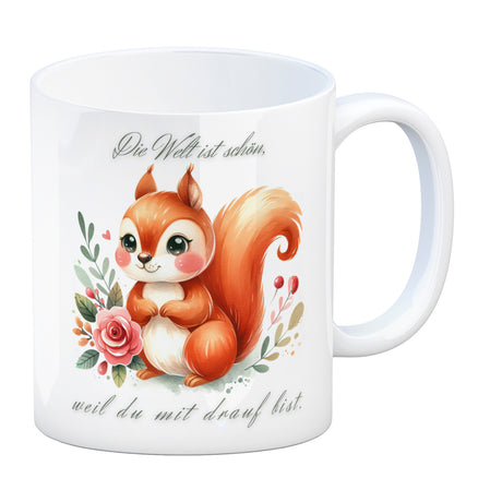 €12,95Grundpreis /Nicht verfügbarSehr geringer Bestand (1 Einheit)Eichhörnchen Kaffeebecher mit Spruch Welt schön da du dabei
