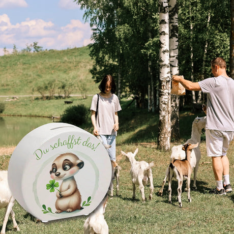 Ab €12,95Grundpreis /Nicht verfügbarAuf LagerErdmännchen mit Kleeblatt Spardose mit Spruch Du schaffst das