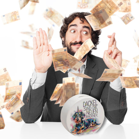 Ab €4,90Grundpreis /Nicht verfügbarAuf LagerHier ist der Dackel der Chef Spardose - Dackel auf Bürostuhl