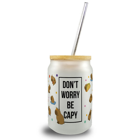 Dont worry be capy Capybara Trinkglas mit Bambusdeckel
