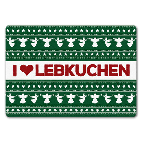 I love Lebkuchen Fußmatte ohne Rand in grün mit Weihnachtsmuster Motiv