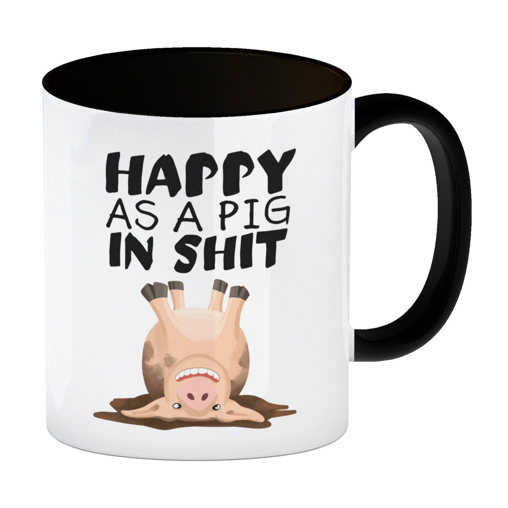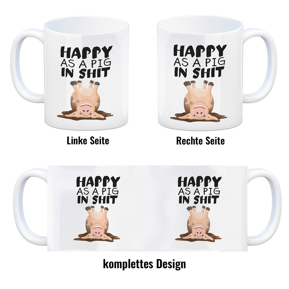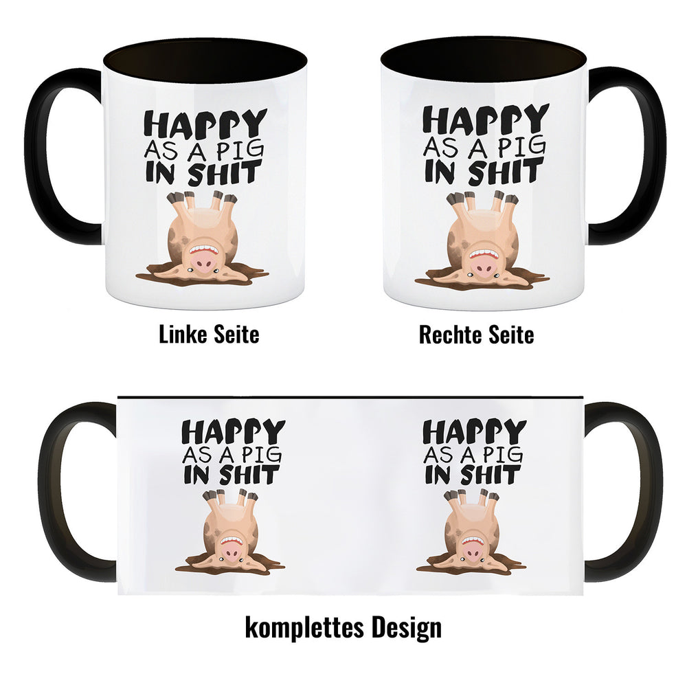 - 1x Happy as a pig in shit Kaffeebecher mit glücklichem Schwein in der gewählten Ausführung