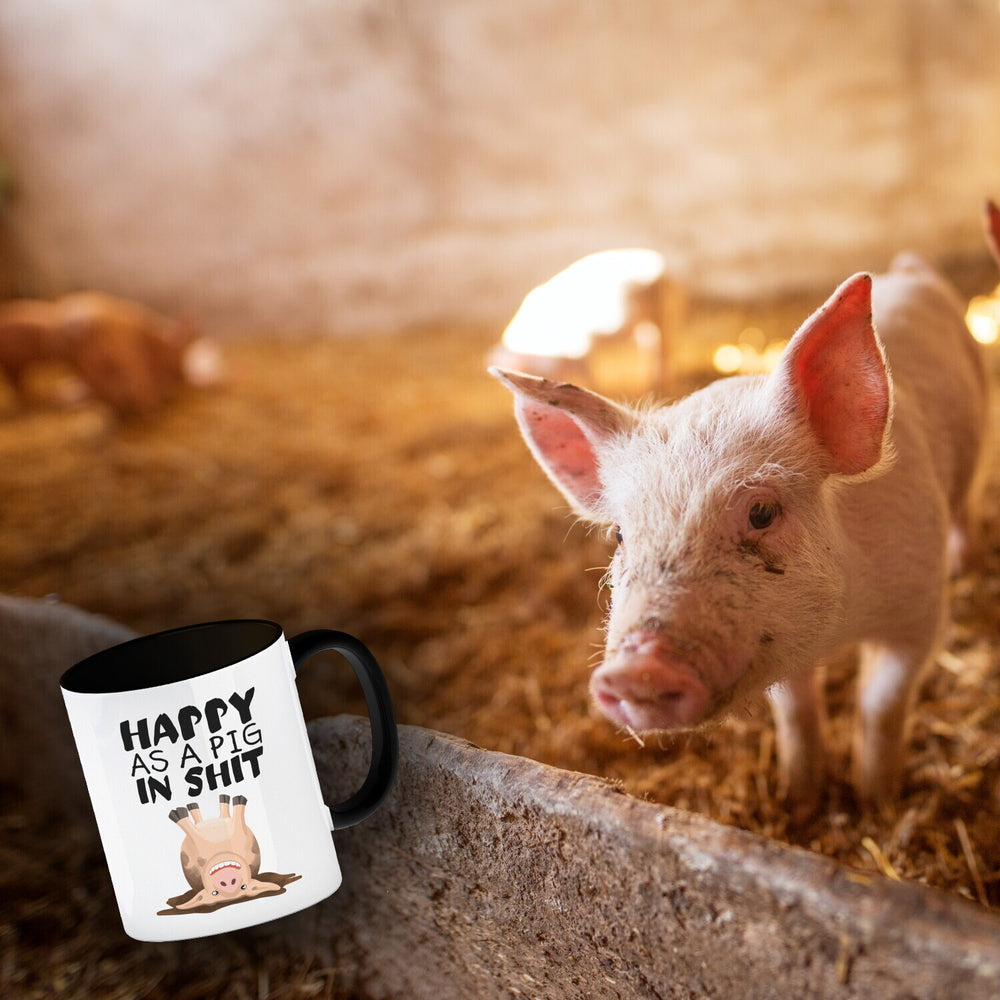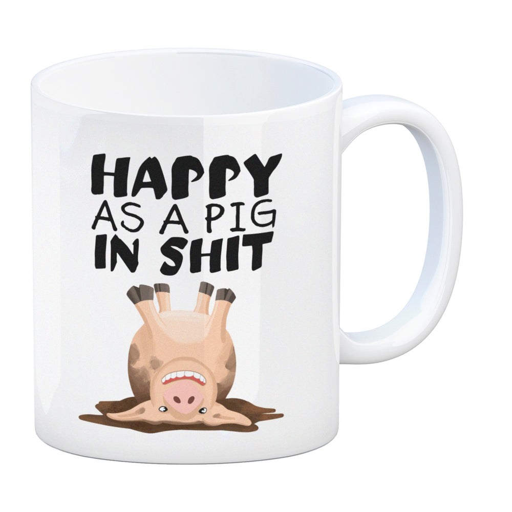 - Fühlst du dich manchmal auch so glücklich wie ein Schwein? Mit dieser witzigen Tasse kannst du dein Glück teilen und mit dem Motiv auch andere zum Lachen bringen.