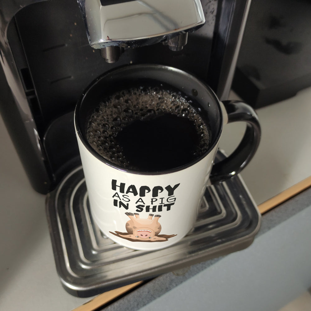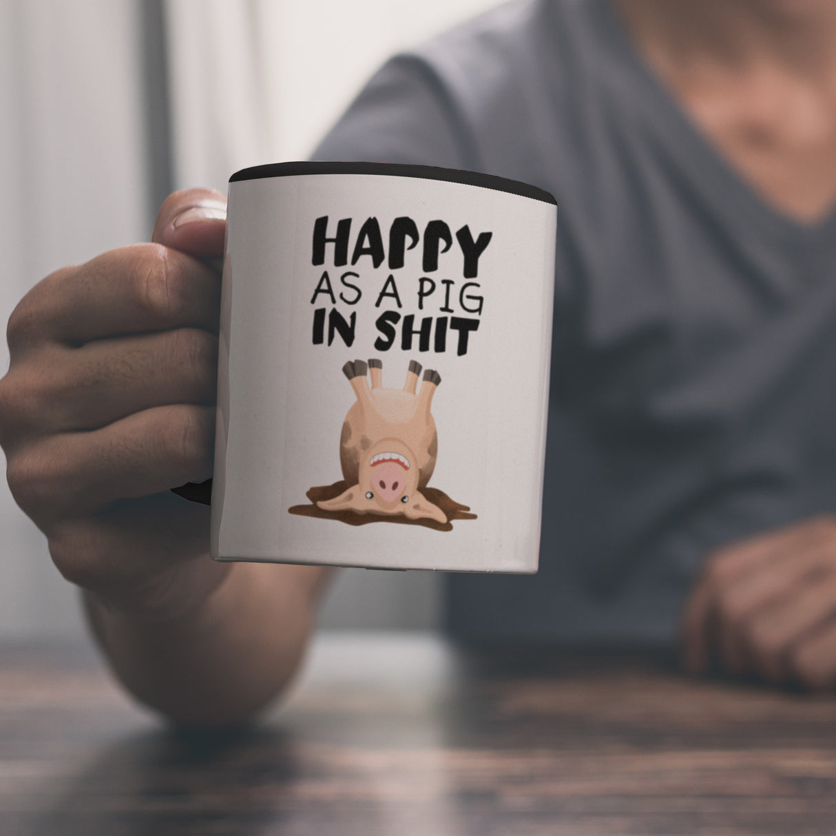 Happy as a pig in shit Kaffeebecher mit glücklichem Schwein