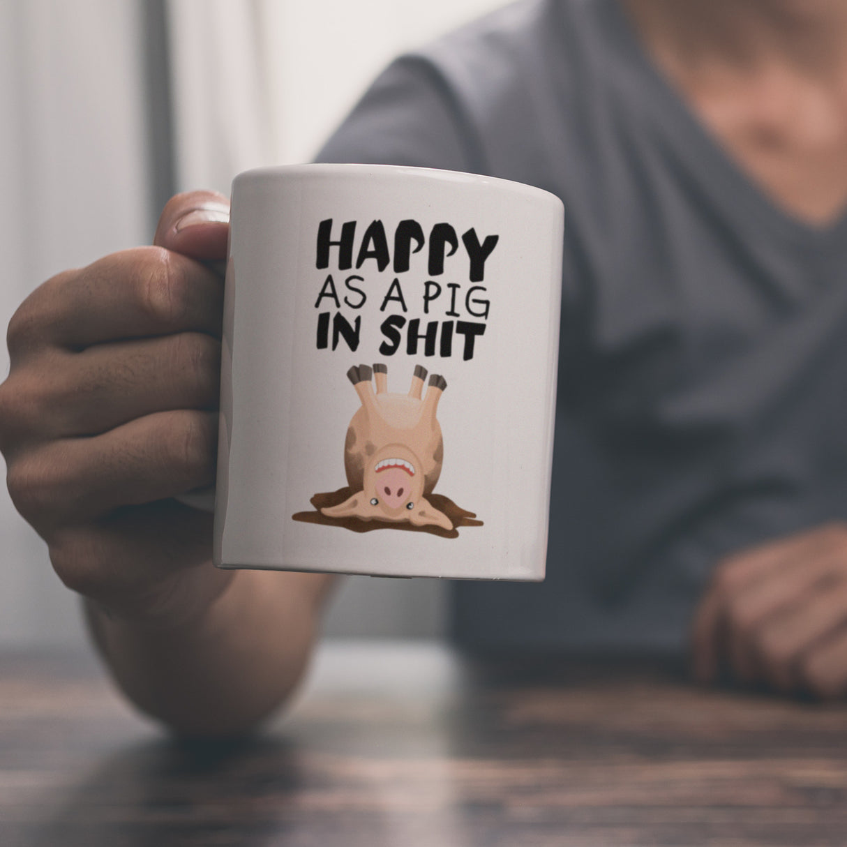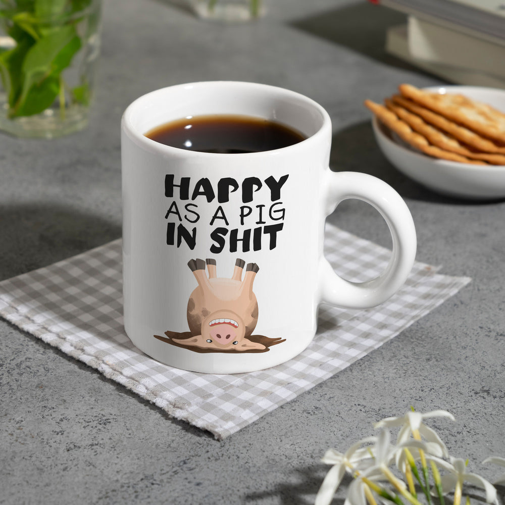 Happy as a pig in shit Kaffeebecher mit glücklichem Schwein - Weiß ist auf Lager und wird versandt, sobald es wieder verfügbar ist