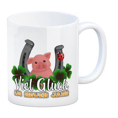 Viel Glück im neuen Jahr Kaffeebecher mit Glücksbringern