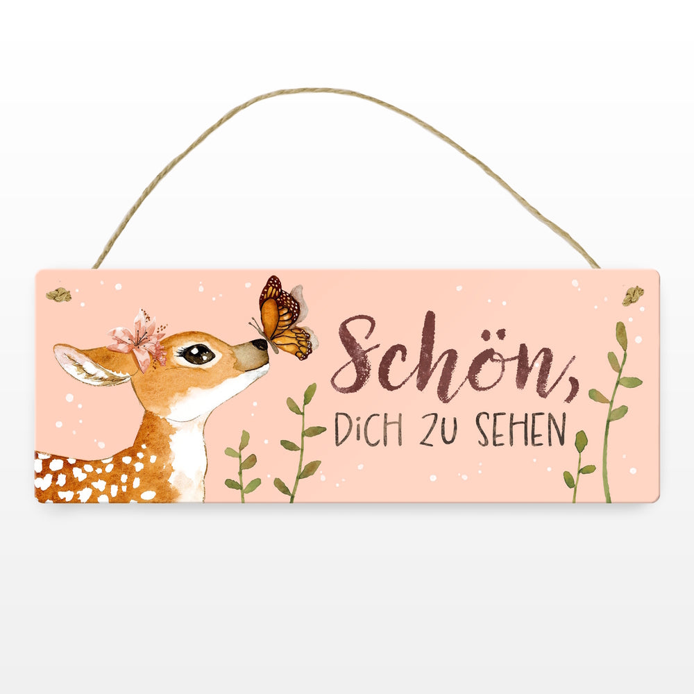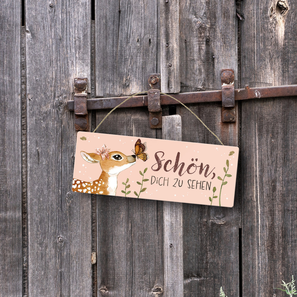 - 1x Schön dich zu sehen Metallschild mit niedlichem Reh in der gewählten Größe