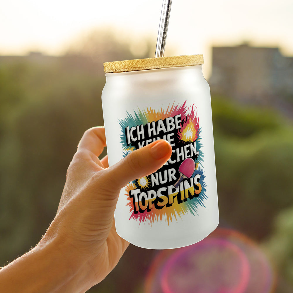 - 1x Keine Schwächen, nur Topspins Trinkglas mit Bambusdeckel Tischtennisschläger und Ball mit Bambusdeckel oder Henkel