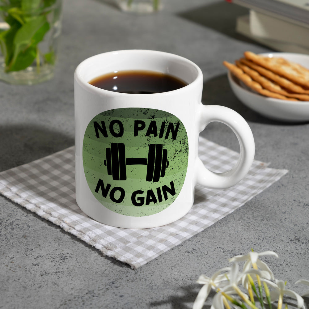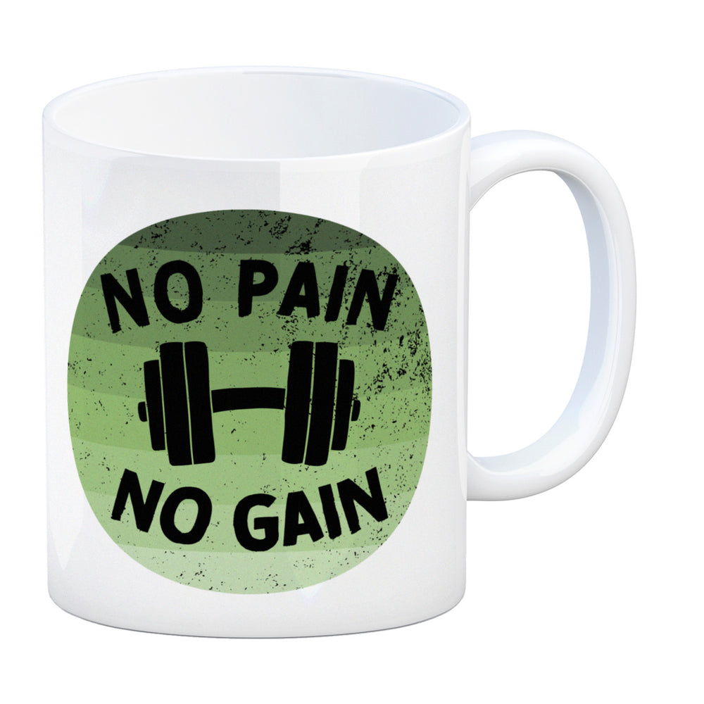 No pain no gain Fitness Kaffeebecher mit Hantel